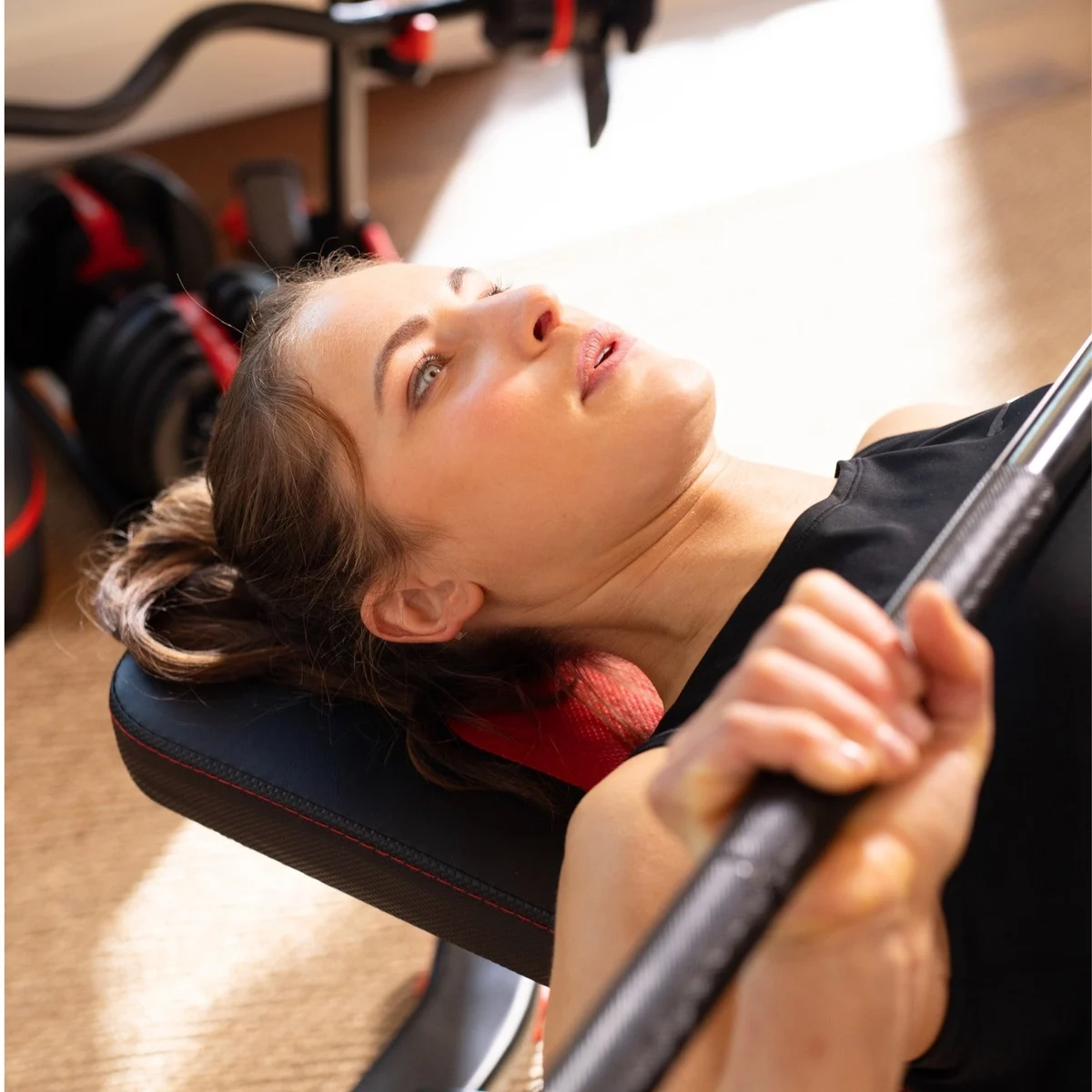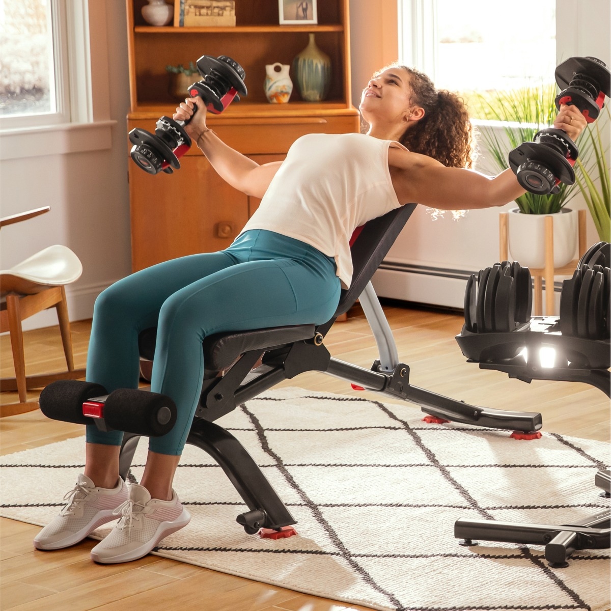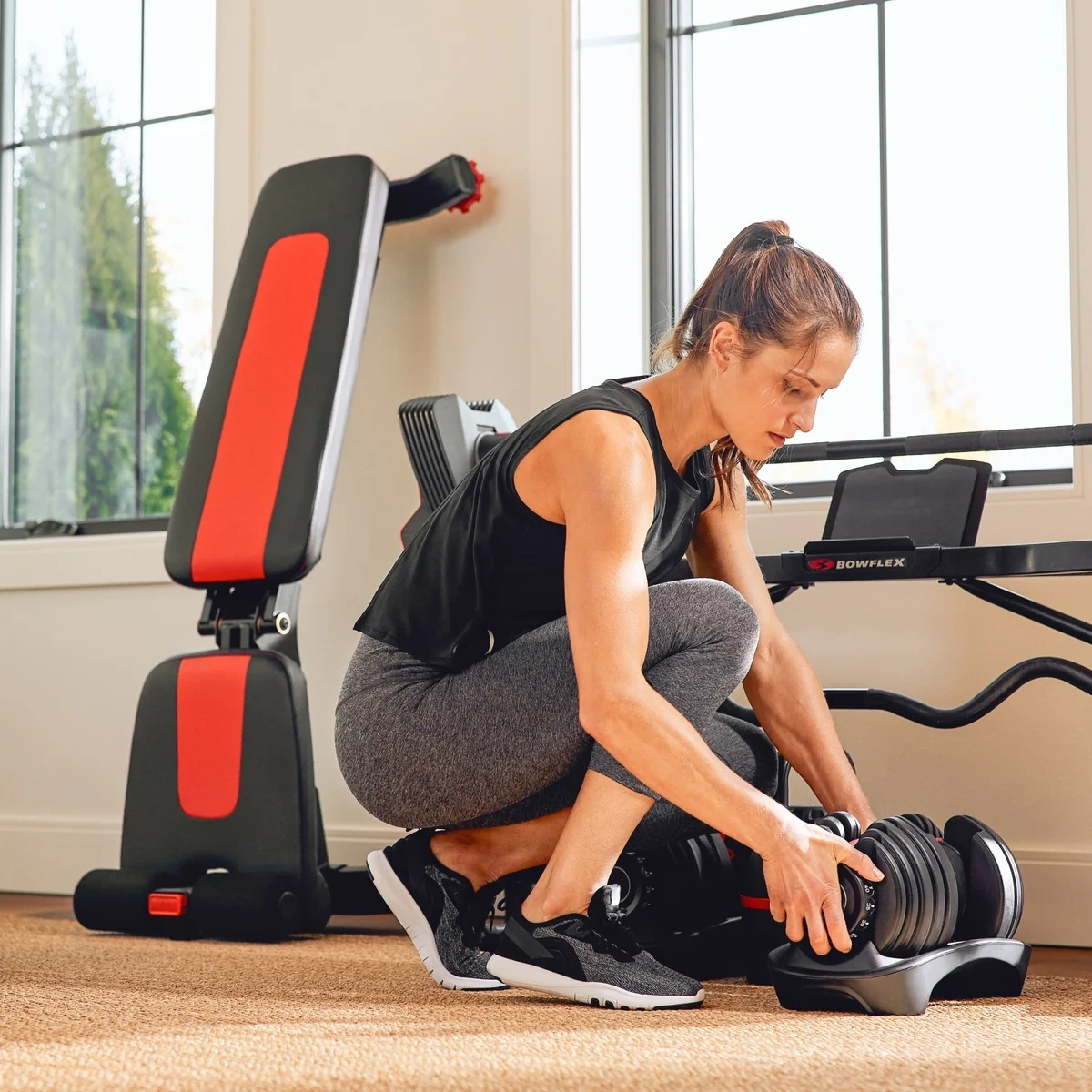 Los productos de SelectTech están diseñados para ahorrar espacio. Entre entrenamientos puedes guardar el banco con un sencillo proceso de click-lift-and-go.
