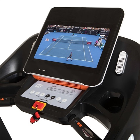 Pantalla TFT de 15,6 pulgadas con soporte para tablet que permite un entrenamiento más entretenido y Porta-botellas.