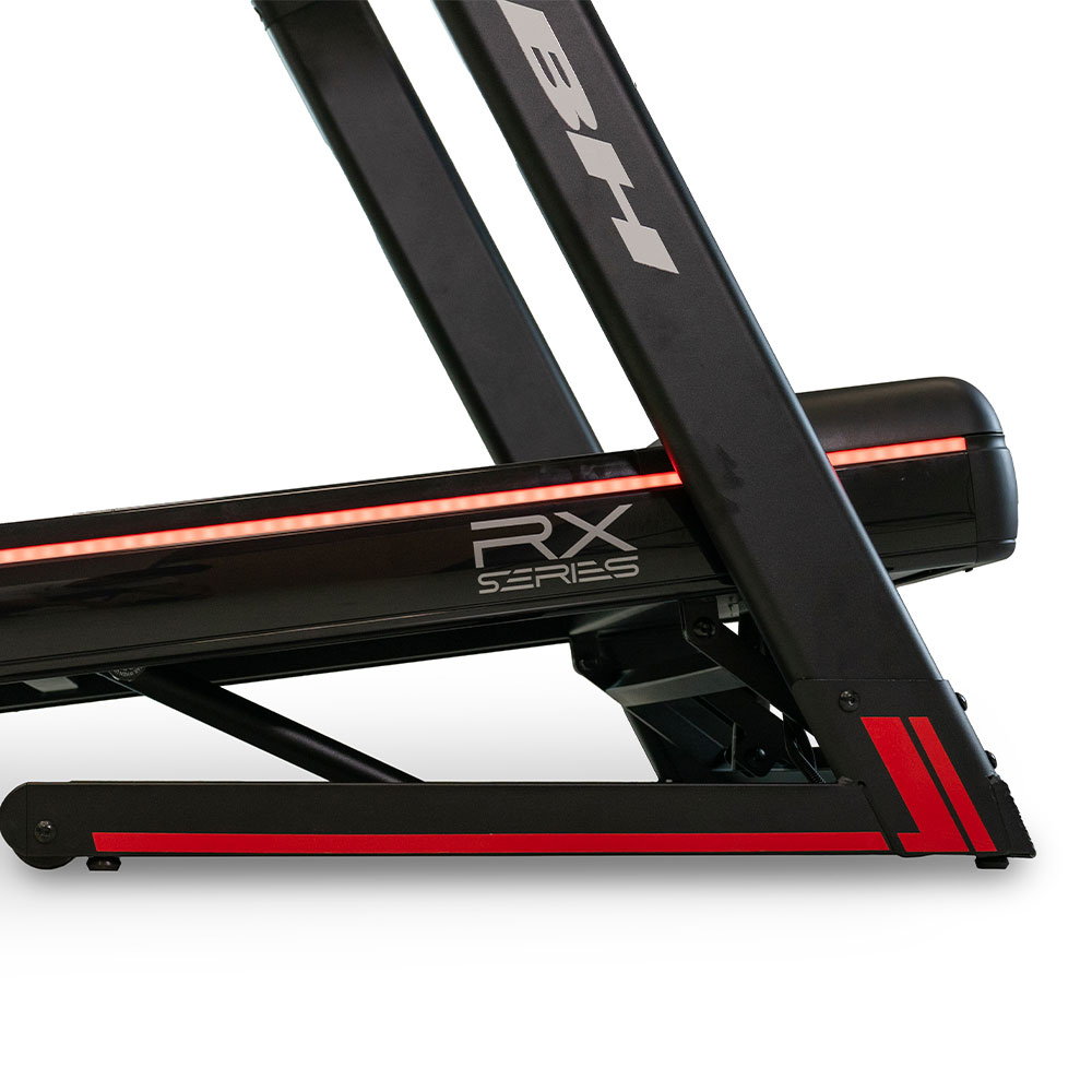 La cinta de correr RX9 G6174N es la opción ideal para tus entrenamientos, ofreciendo una velocidad de hasta 22 km/h con un potente motor que va de 2.25 a 4.0 CV. Diseñada para adaptarse a tus necesidades, incluye carga inalámbrica para tus dispositivos, lo que te permite mantenerte conectado mientras entrenas. Disfruta de tu música favorita a través de los altavoces integrados y optimiza tus sesiones con la conexión Bluetooth FTMS, compatible con tus apps de fitness preferidas.