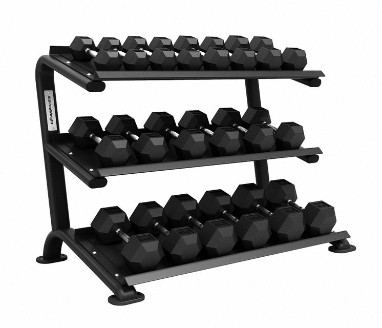 El Rack Mancuernas Hexagonales 3 bandejas cuenta con un diseño elegante y estético, respaldado por un exhaustivo estudio de calidad que garantiza un uso totalmente profesional. Es un soporte resistente y duradero fabricado en hierro con un acabado en epoxi de color negro. Su diseño elegante y estético permite un almacenamiento organizado de las mancuernas hexagonales. Con una capacidad de hasta 12 pares de mancuernas de 2 kg a 12,5 kg o 8 pares de mancuernas de 12,5 kg a 30 kg, este rack es una opción ideal para mantener tus mancuernas en orden y al alcance durante tus sesiones de entrenamiento.